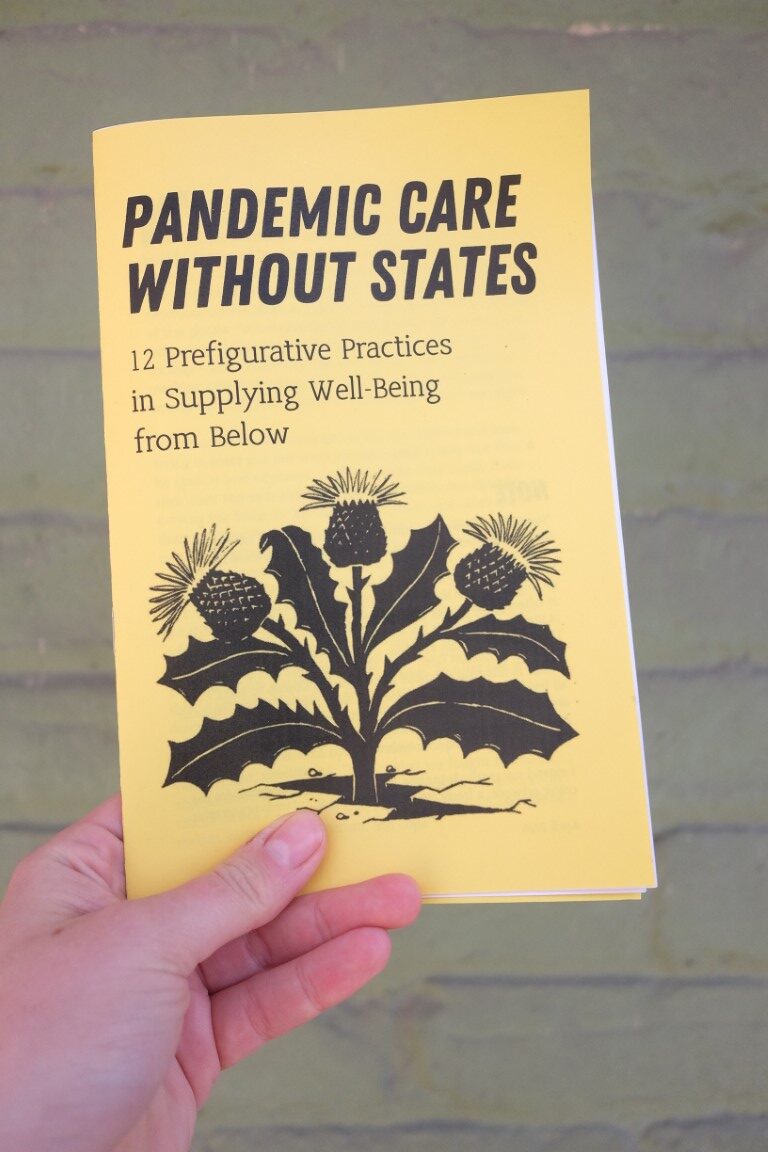 Yet from an affable anarchist stance — my belief in always illuminating our messy beautiful experiments, meaning what we actually do well, day in and day out — this zine supplies varied glimpses of how anarchists did and are still trying to embody, even if modestly, “pandemic care without states.” The stories spotlight the ways that some anarchists took up the challenge and ran with it, never forgetting — indeed, instead remembering — that love and solidarity are verbs, and our task is to dream up and enact liberatory visions, even if hard or inconvenient.”