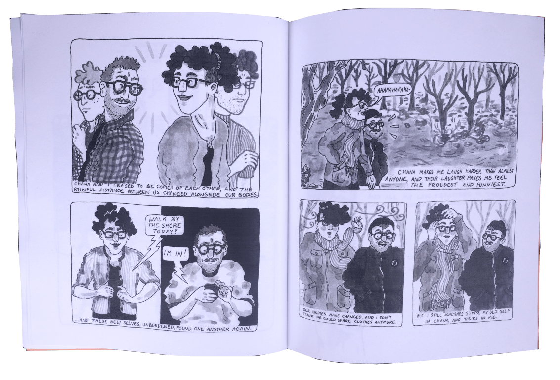 In this comic, originally published online through Crucial Comix, Cee Lavery recalls his relationship with an ex at a moment when it became clear that neither of their genders were a good fit, and that their relationship would also be coming come to an end. With tenderness and humour, he chronicles swapping clothes and accessories, and eventually building a deep and cherished friendship.